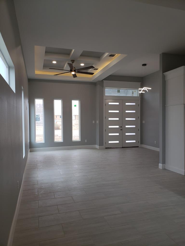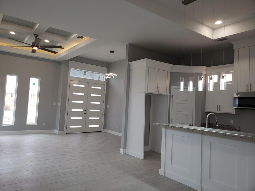 A must-see interior and exterior. Beautiful high ceilings at 12 ft. for the living area and 11ft. kitchen area with custom cabinets dressed in granite. This modern 3 bedroom 2 bathroom includes a stunning master bedroom with a 2 design ceiling at 10 ft. and a large walking closet with a double sink vanity with granite countertop and custom tile showers and floors. The kitchen includes a luxury microwave with a built-in air extractor. Kitchen cabinets have unique glass door windows for a cozy or well-illuminated kitchen area. Beautiful kitchen island with an added breakfast bar all dressed granite with power outlet. House includes LED light fixtures and fans throughout the house with a fabulous 7ft. ceiling fan in the living room area. An 8ft. high front door. For more information contact the listing agent.